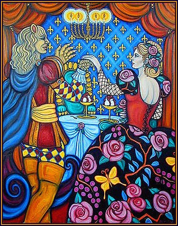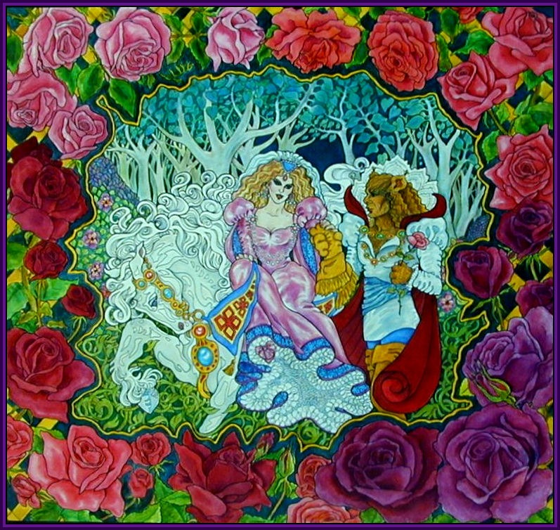 The Beast and his Beauty have been a favorite couple of mine, celebrated in several paintings including this watercolor stroll in a midnight garden. Although I enjoy looking at other visions, my beast is very much the handsome leonine creature of Cocteau’s film, with his exquisitely magical castle. I was also fond of Vincent from the Beauty and the Beast television series.