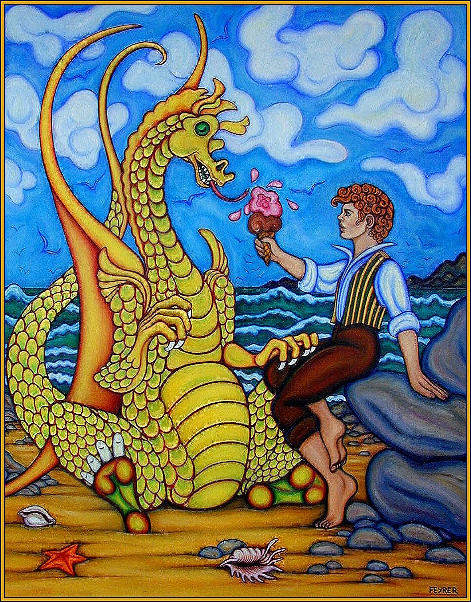 These two companion ice cream paintings were done about the same time. The first is my vision of Puff The Magic Dragon.