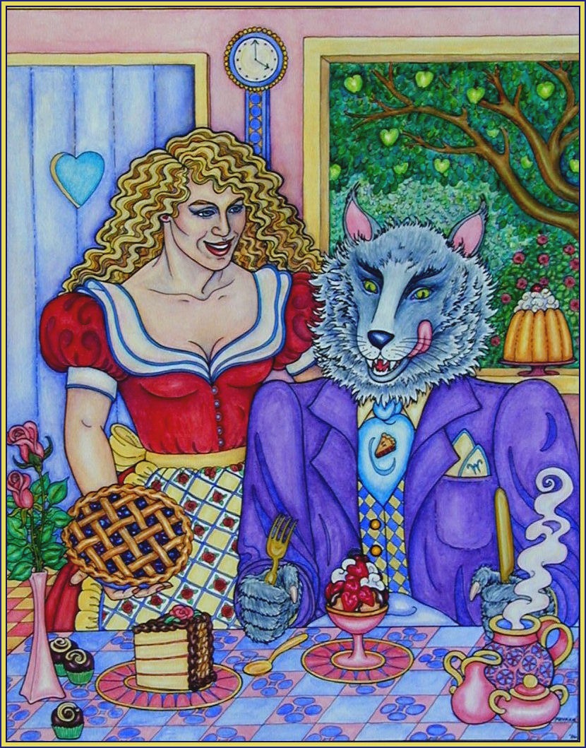 This watercolor was to be the cover for Sweet Fang, the never-quite finished cookbook of deliciously decadent desserts and sophisticated entrées touched with sweetness.
